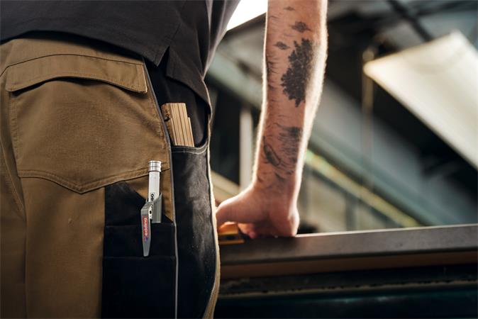 -hosszú (42 mm) és vékony (5,5 mm) hegyfoglalatnak köszönhetően a ceruza még a keskeny vagy más nehezen hozzáférhető helyeken is használható, pl. furatlyukak vagy vágó élek jelölése esetén