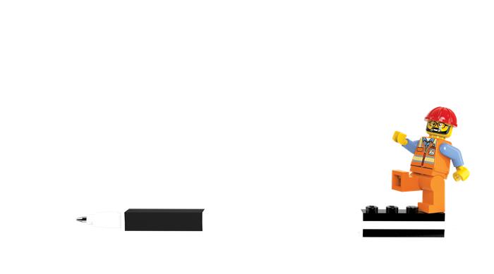 -LEGO-val a tolltest végén, így összeilleszthető egyéb LEGO végű dísszel, írószerrel, játékkal